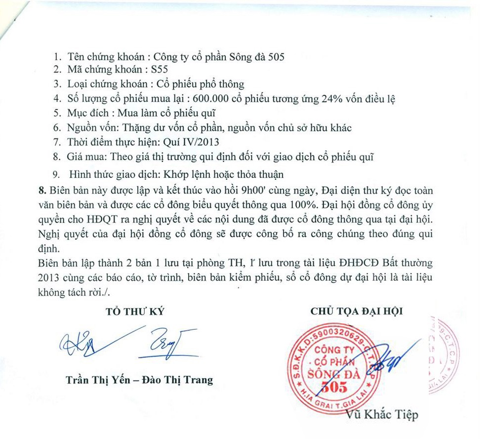 Biên bản họp, Nghị Quyết và hình ảnh ĐHCĐ bất thường 2013