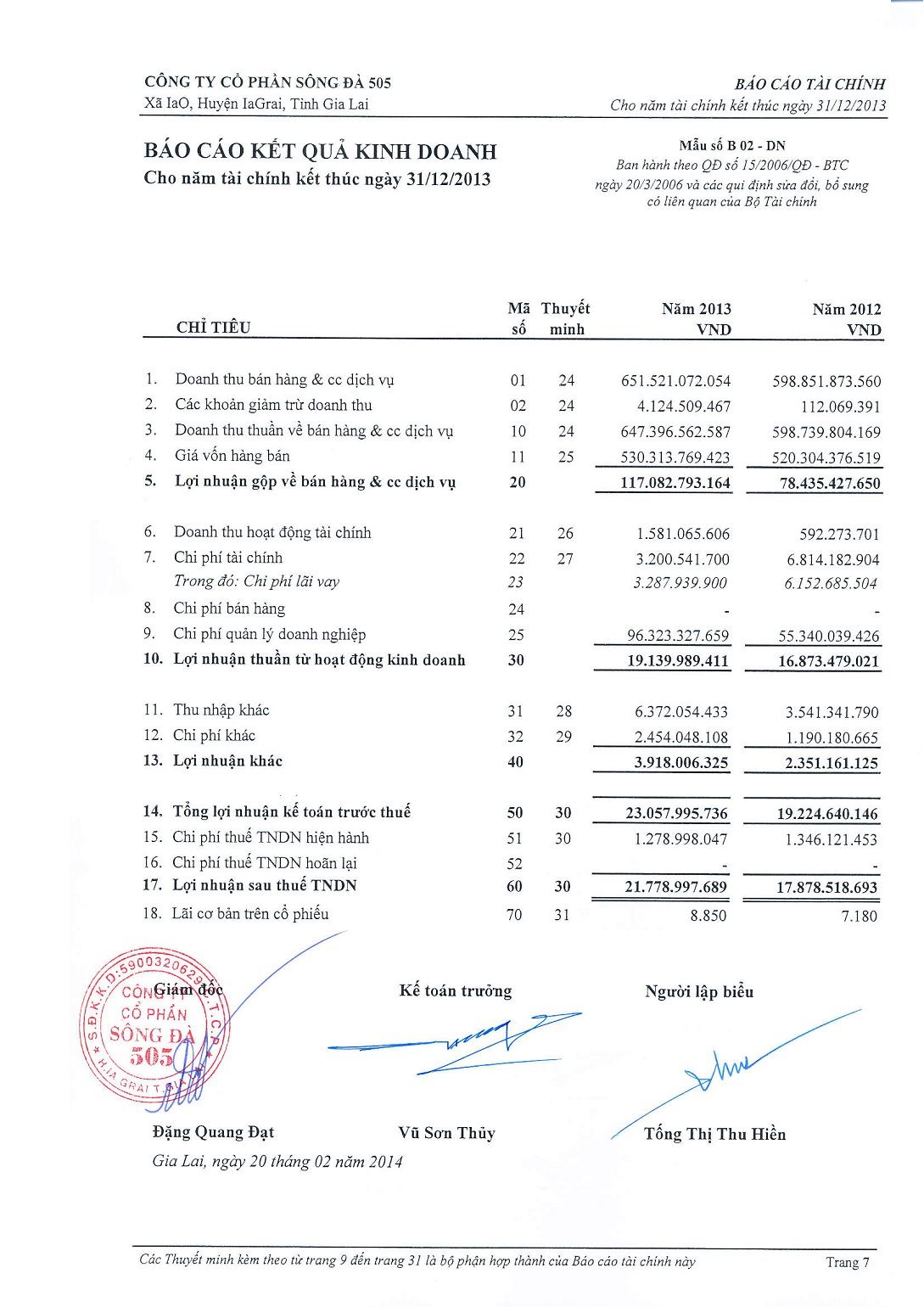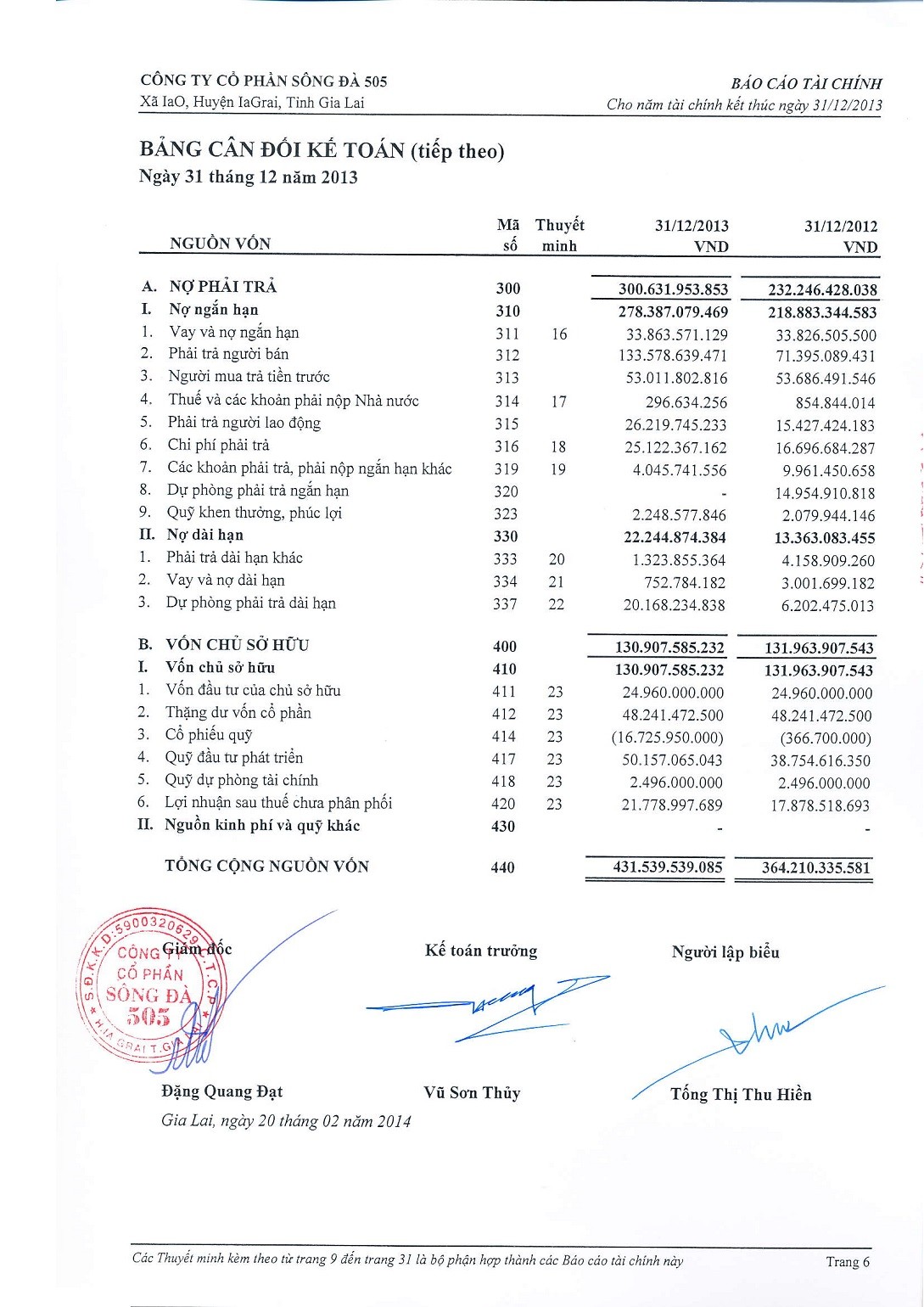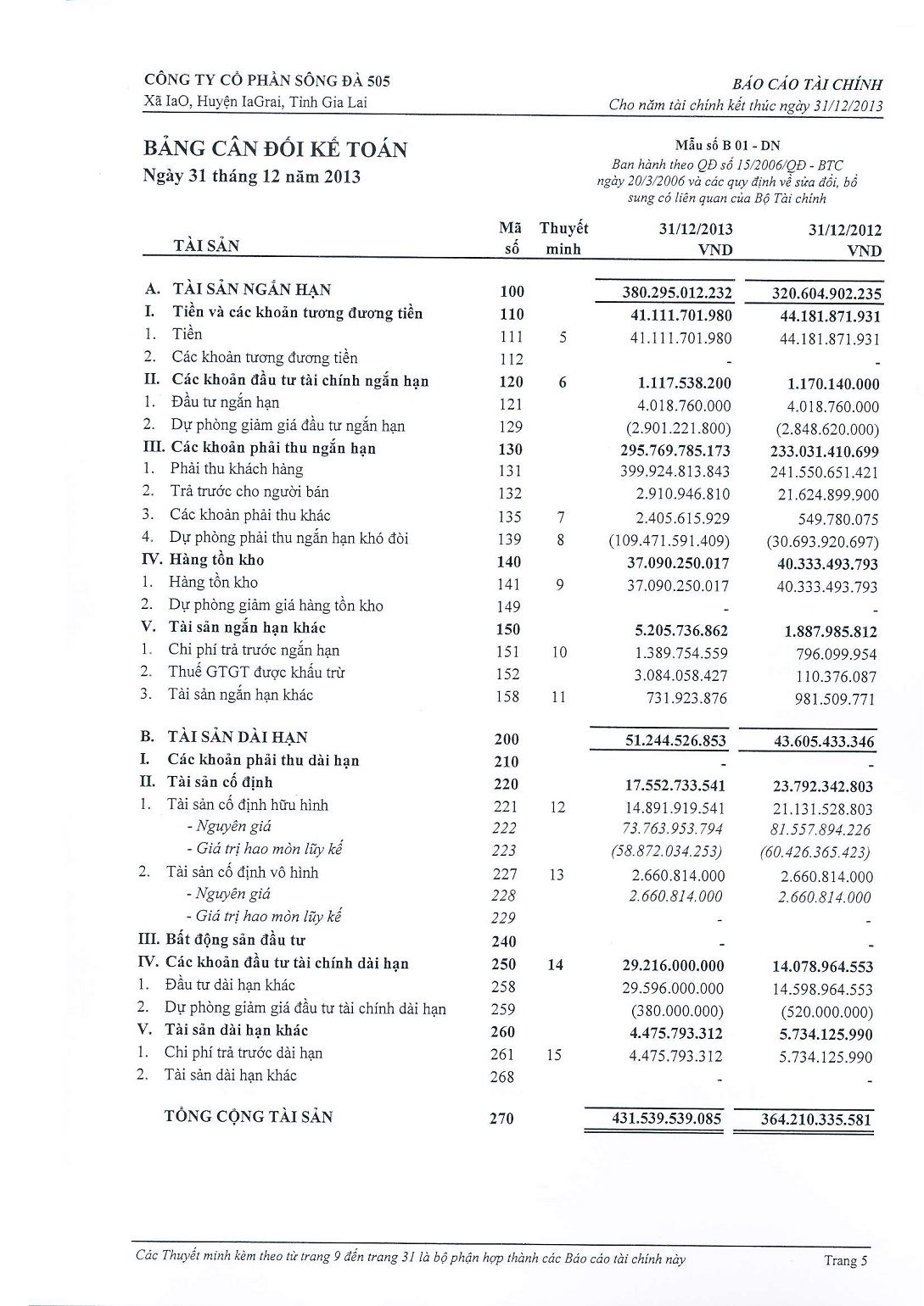 Báo cáo tài chính năm 2013 đã kiểm toán