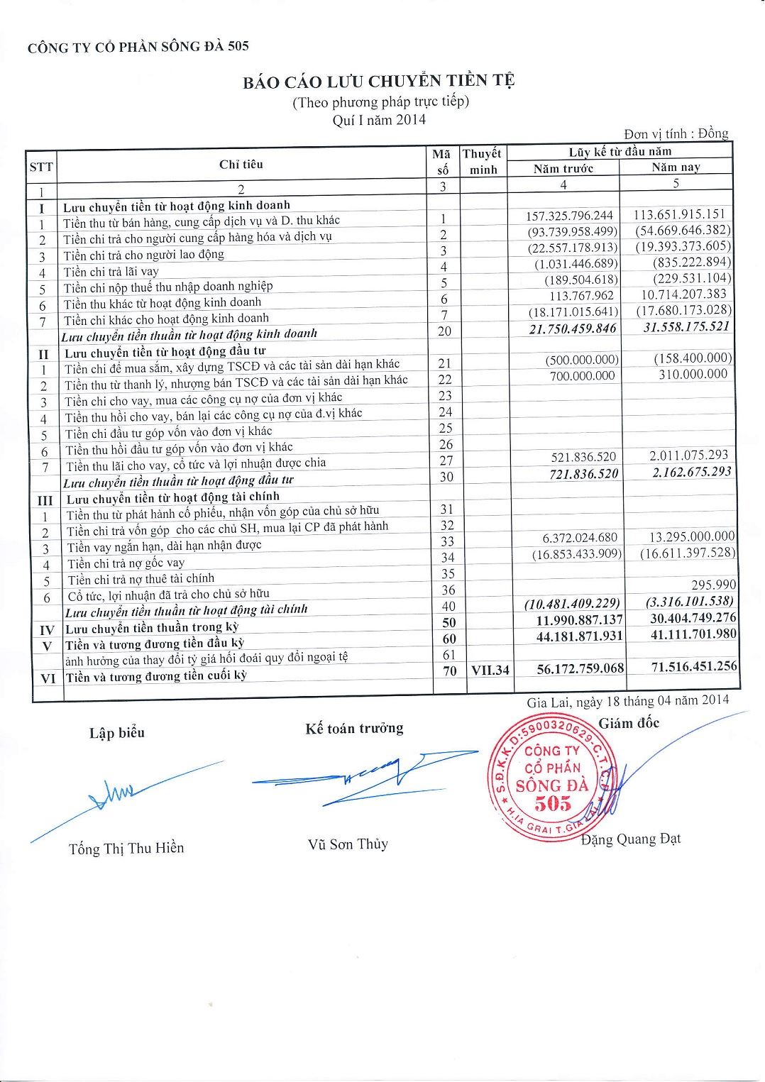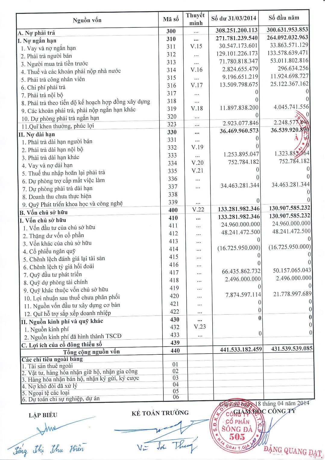 Báo cáo tài chính quý I năm 2014