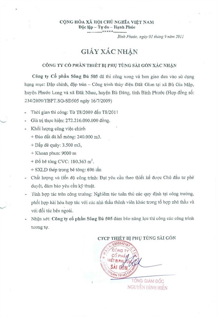 Công ty cổ phần thiết bị phụ tùng Sài Gòn – Thuỷ điện Đak Glun