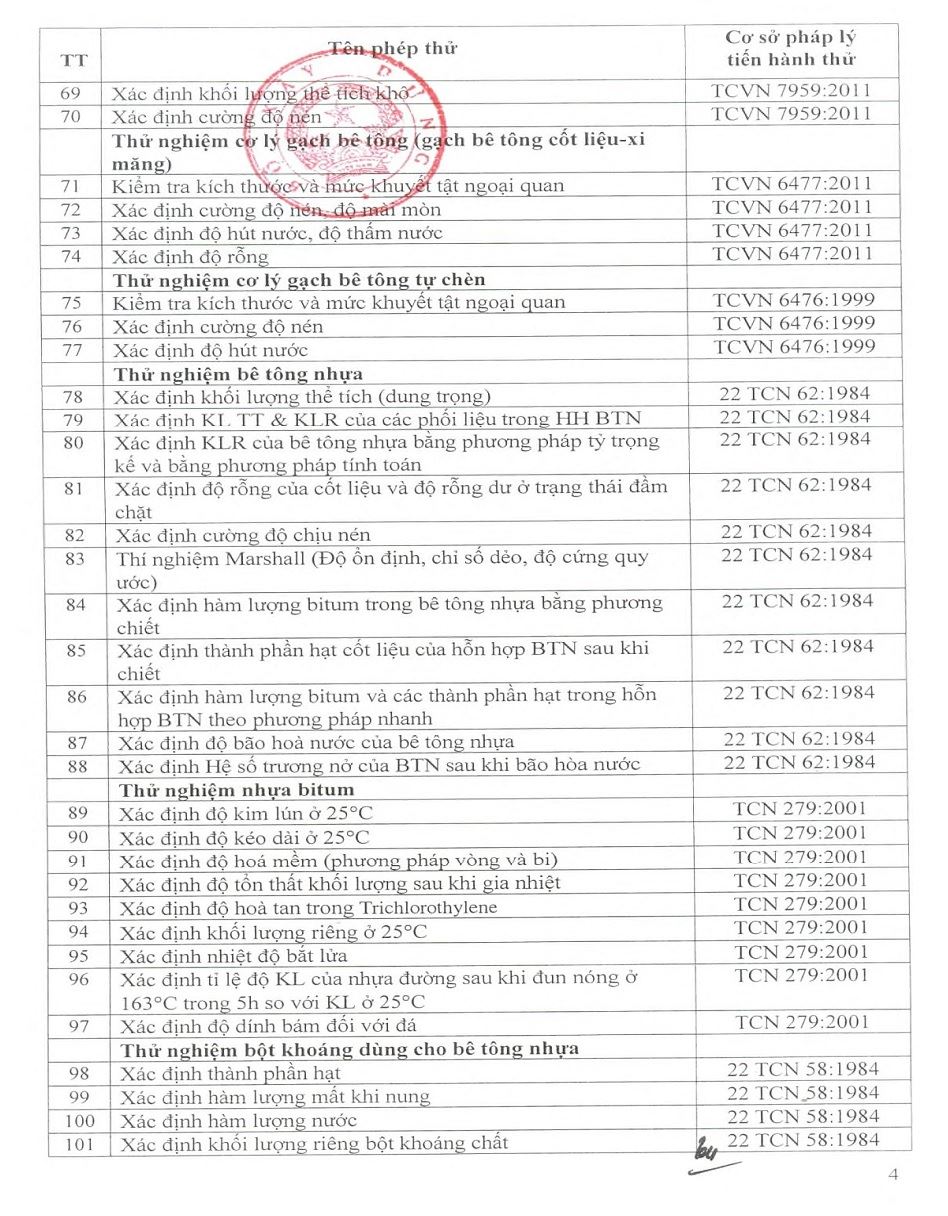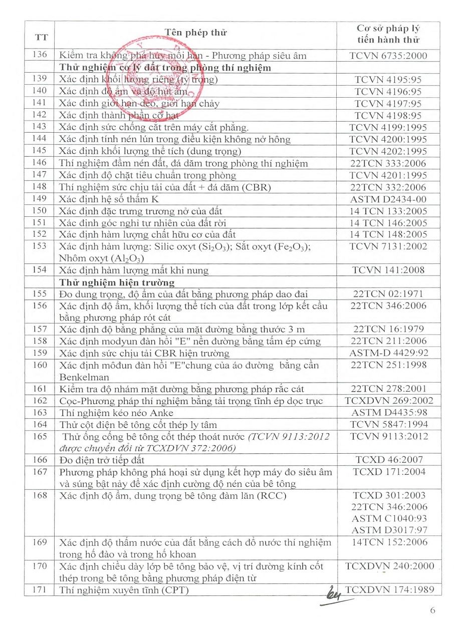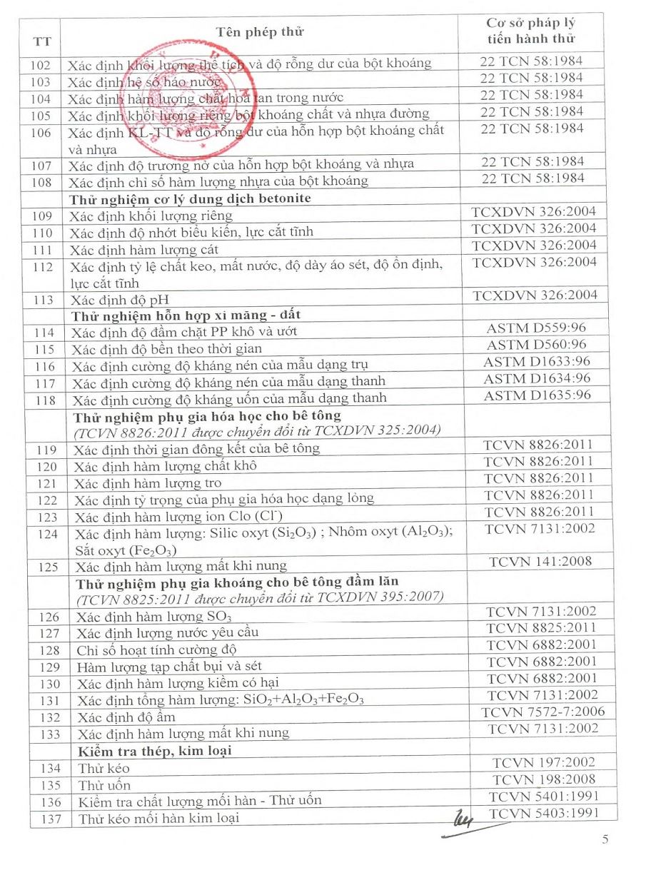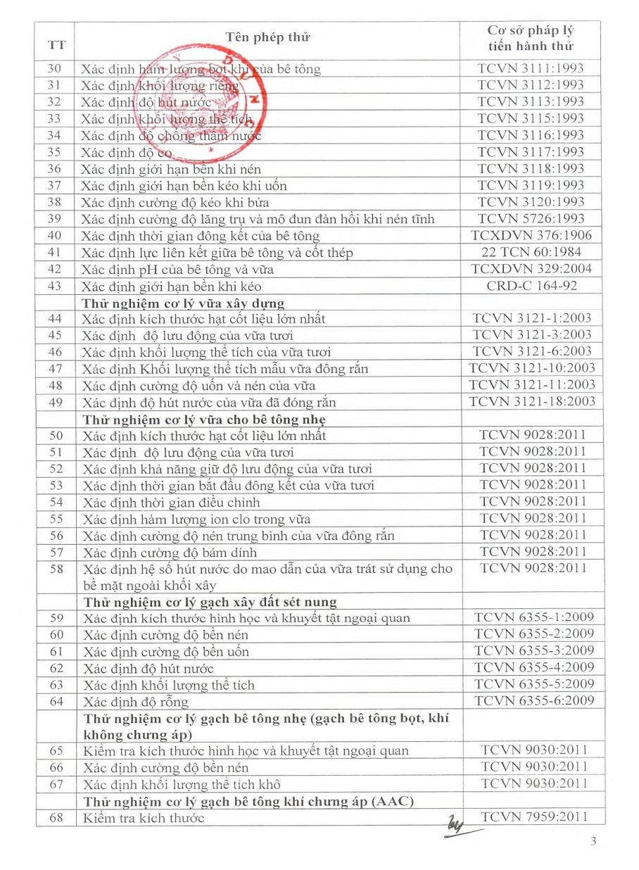 Lĩnh vực thí nghiệm và kiểm định được công nhận