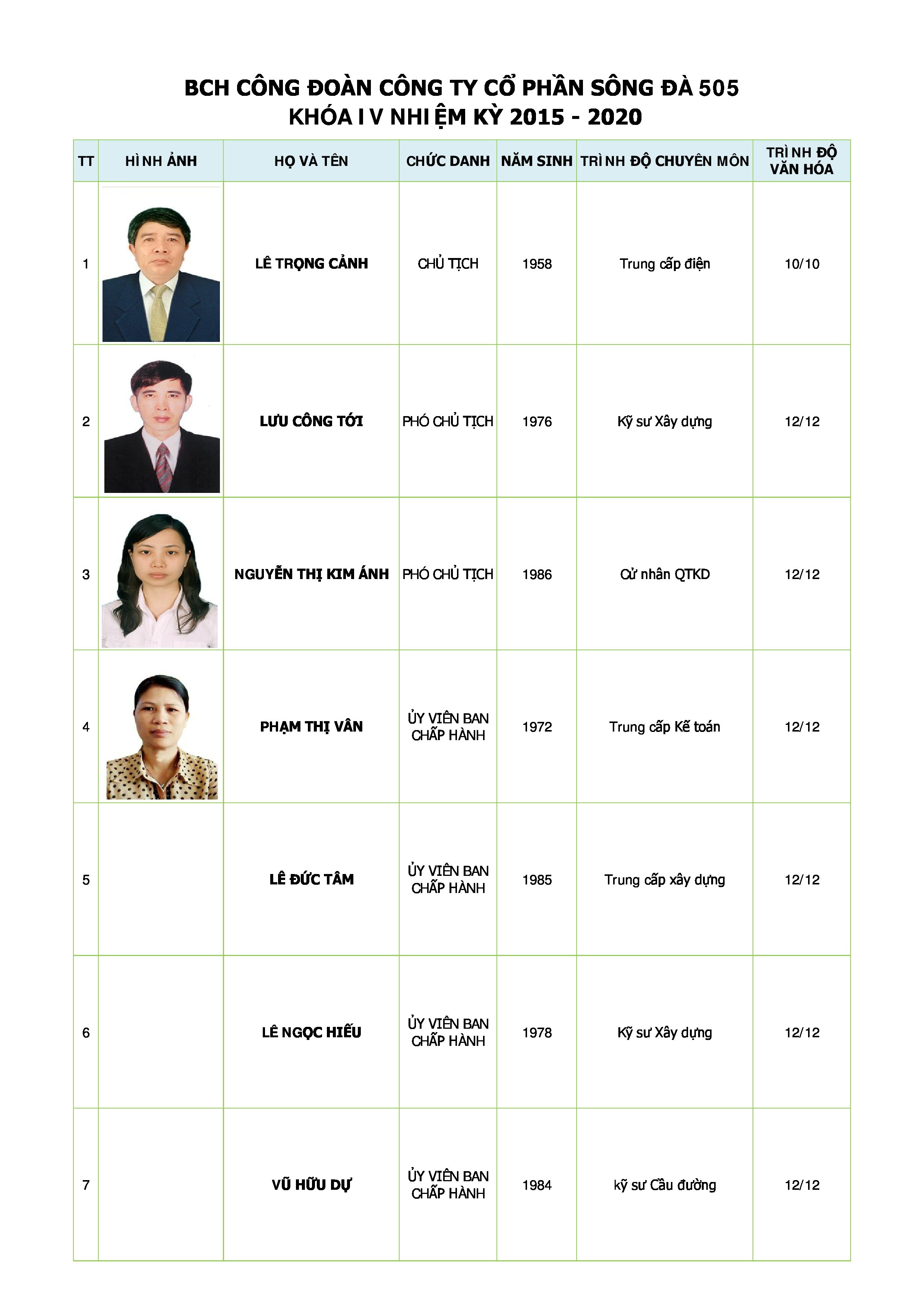 Nhân sự BCH Công Đoàn khóa IV nhiệm kỳ 2015-2020