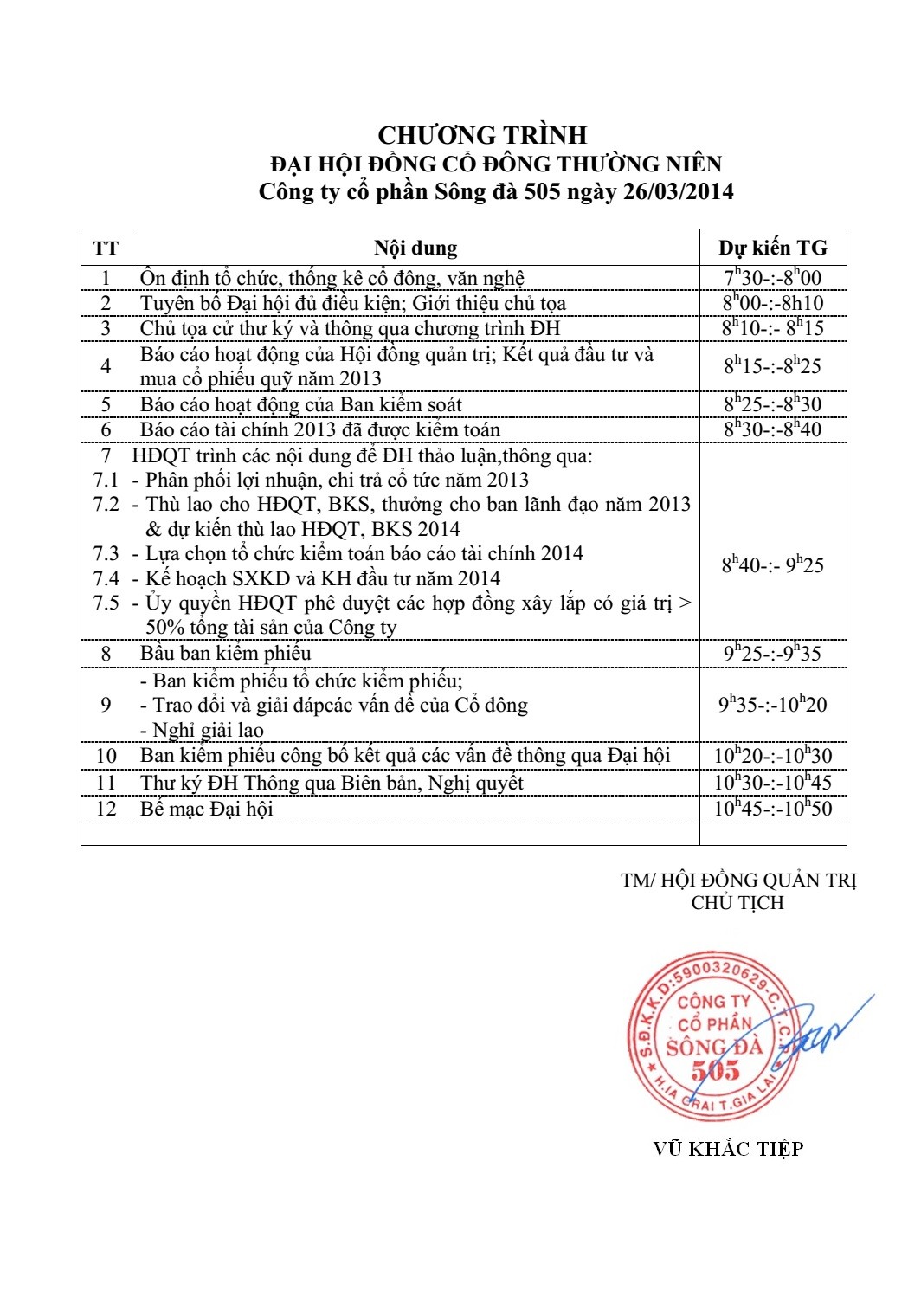 Chương trình và Tài liệu họp ĐHCĐ năm 2014